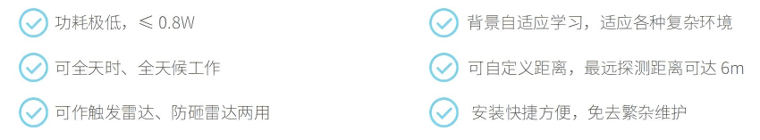 检测距离范围 | 0~6m(可设置) | 漏检率 | ≤0.1% |