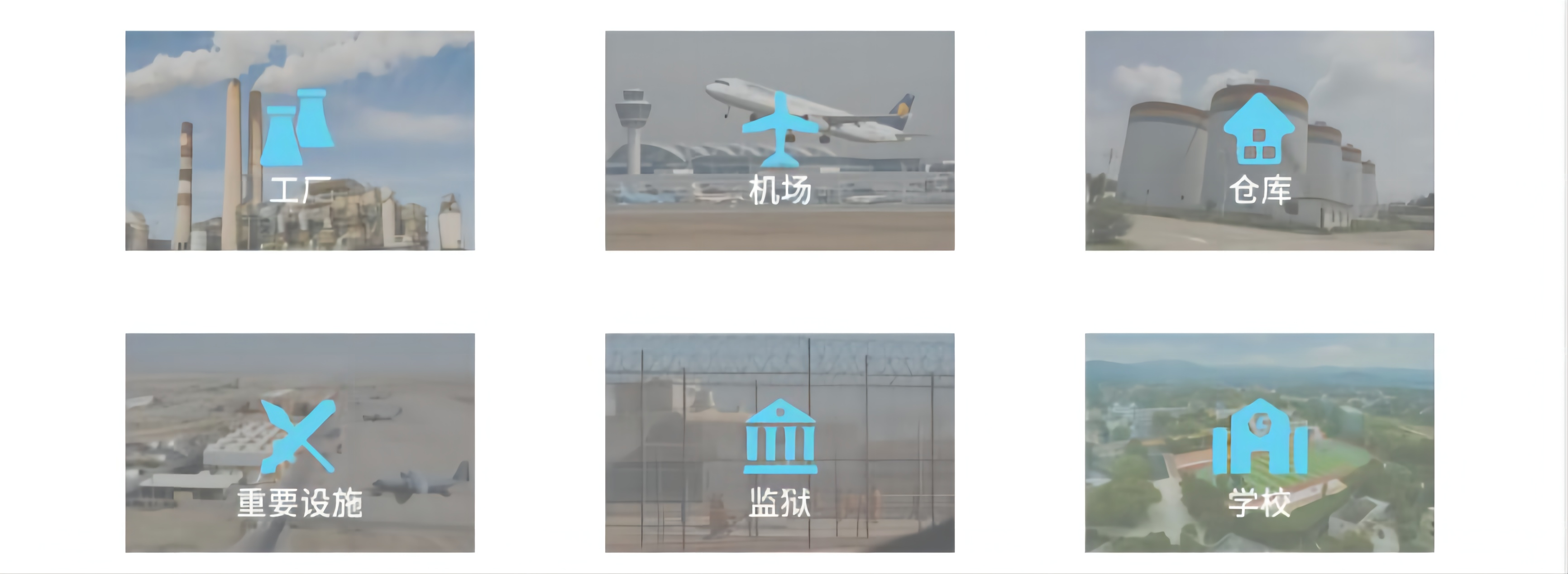 轨道交通、机场、监狱、仓库、重要设施等防护区域。