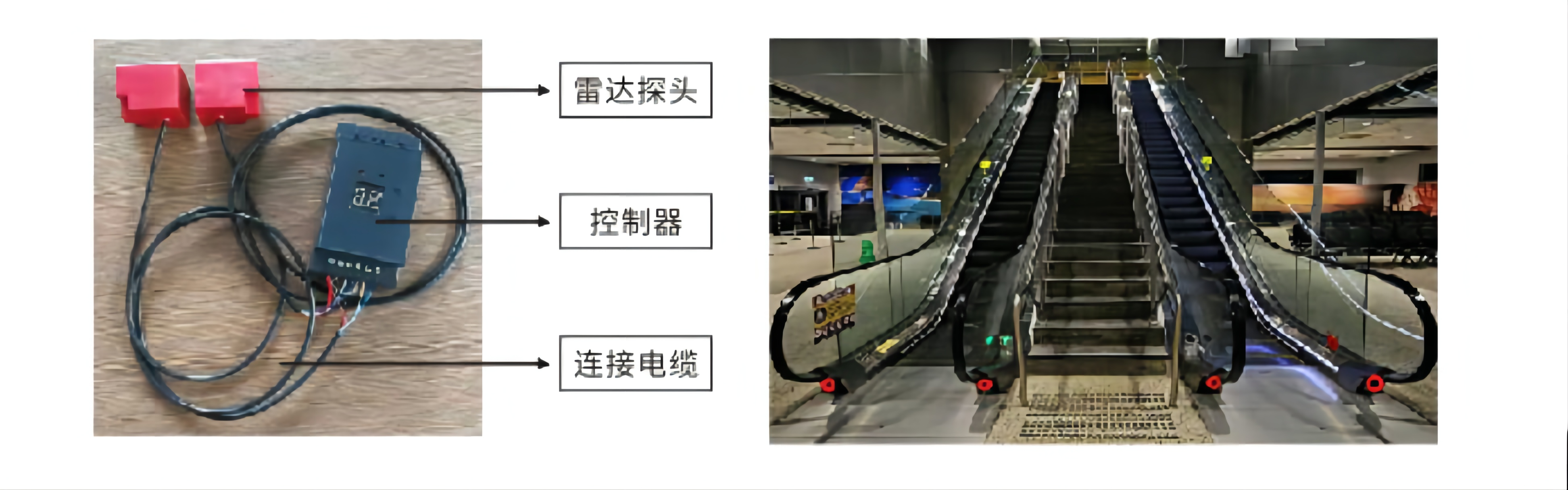扶梯雷达是实现扶梯智能化运行的检测系统,是非接触式的用于检测扶梯入口处目标(人)的传感器。实现有人乘坐,扶梯启动;无人乘坐、人员逆行或横穿,扶梯停止。达到节能目的。