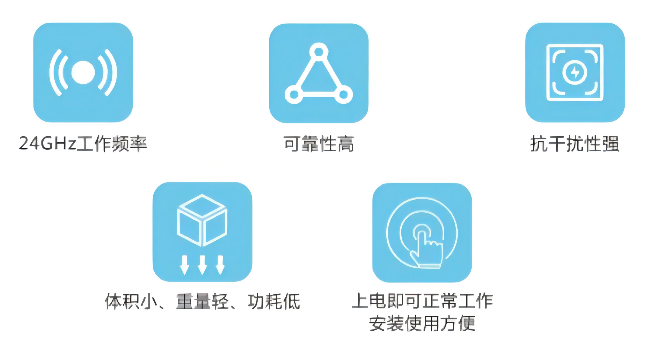 天线波束宽度(-3dB) | 80°(电路板短边方向) | 整机功耗 | ≤0.04W |